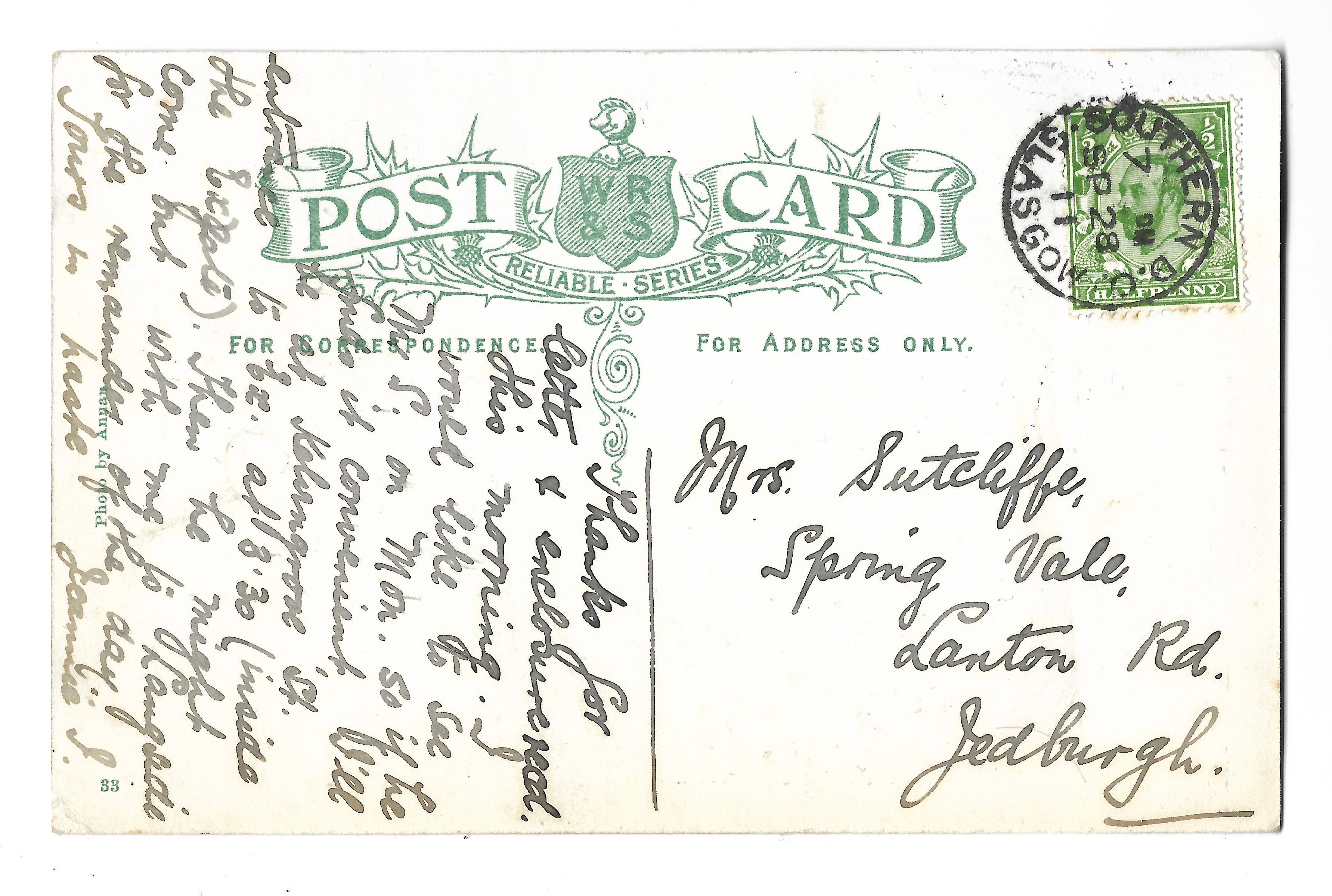 ‘I am writing this from Glasgow as you will see. I will be leaving Closeburn with - half past one and I will see you at - in the afternoon. If I don’t see you at home’